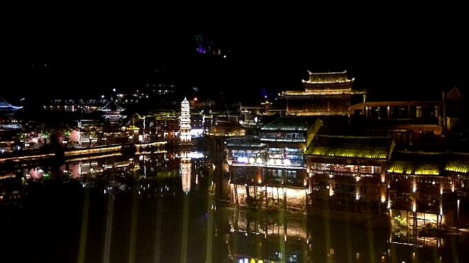 江风吹来惹人醉,凤凰沱江夜色美。