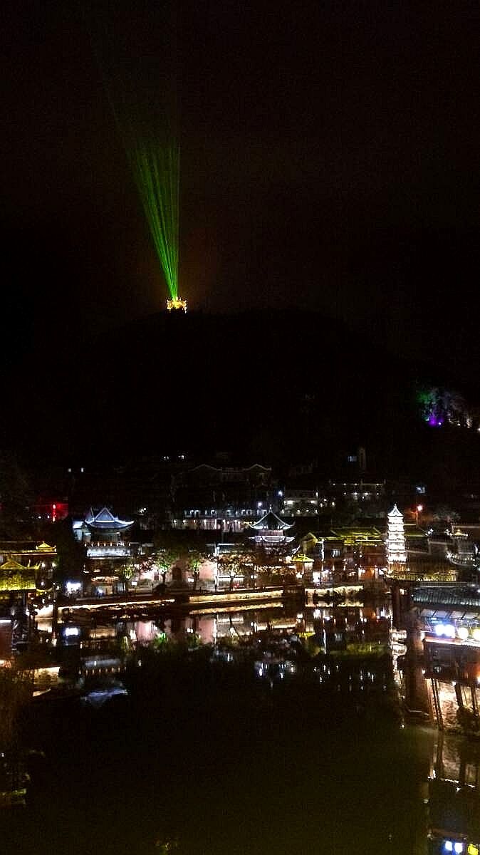 这是11月30日凤凰古城的夜景,漆黑夜空中那高高在上、格外耀眼的一道光束,犹如围棋群星的目光,带去怀念之情;又仿佛是吴清源巨星的目光,为我们指明了围棋发展的方向:21世纪,六合之棋,天人合一,人神共鉴。