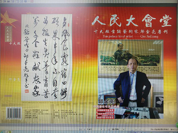 邱金亮,男,1958年生,福建省莆田市仙游县人,字豪光,笔名一立。中共党员,大学本科毕业。国家一级美术师、高级书法师、国礼艺术家。书法创作受央视专访播放,命名为“方正字迹——邱金亮行楷”近万字作品被方正字库收录上线。作品被刚果女王选为国礼收藏!
