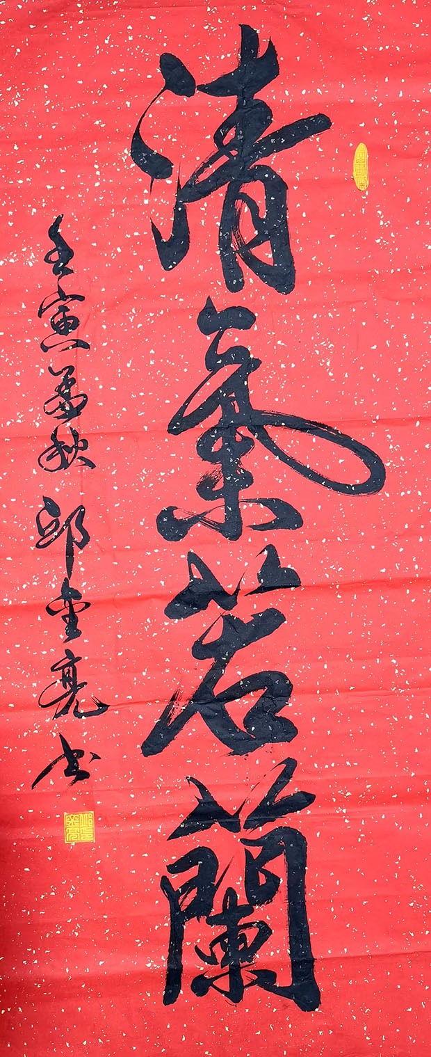 邱金亮,男,1958年生,福建省莆田市仙游县人,字豪光,笔名一立。中共党员,大学本科毕业。国家一级美术师、高级书法师、国礼艺术家。书法创作受央视专访播放,命名为“方正字迹——邱金亮行楷”近万字作品被方正字库收录上线。作品被刚果女王选为国礼收藏!
