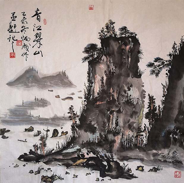 炳成作画,运腕自如、笔力遒劲、苍润随心、用线自然而流畅。