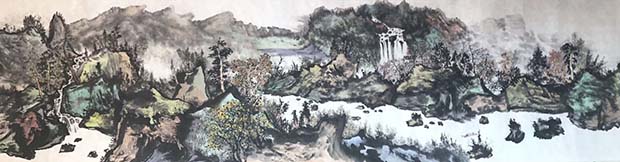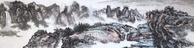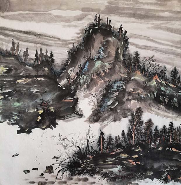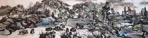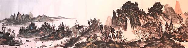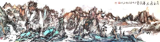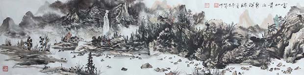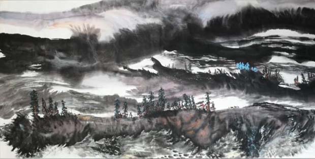 去年夏天,李炳成的国画《高原行旅》在世界日报社纽约中华文化艺术中心举办的“中国中青年国画精品联展”中展出,获杰出艺术创作奖,受到中外美术界的高度重视。熟悉他的人则觉得毫不奇怪,他的画在情感的熔铸、浸润、郁勃纵横、形成了画家心中的理想之境,以抒发先生对高原壮美景象赞颂之情。炳成凭着对西部高原一山一水所触发的情感的长期积淀,对塞上这片厚土作了综合的整体认识和把握。他的画感受到了历史的厚重和生活的艰辛,从他的那茫茫的高山大壑中寓动的勃勃强力,奠定了雄浑博大的基调。远处雪山列嶂,有千里之遥,笔法饱含着气韵的连绵与贯通,而墨色的辅助,使山水意象跳动轻松,与前者作了极好的对比呼应,阴阳浓淡、水云聚散恰到好处,运山川之气脉,发山川之情灵,朴散着宇宙的生命意识,对西部以象征性手法处理,更显出一种理性的冷峻,给人以祥瑞与憧憬、富于意境、韵味无穷,引发人的无限遐想。