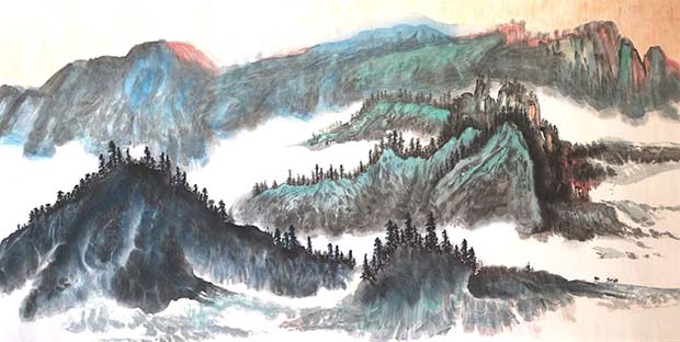 国画《人间正道》入选中国美协举办的“毛泽东诗词创意画展”。
