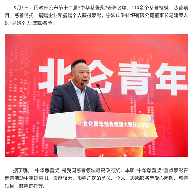 31、慈善公益丨第十二届“中华慈善奖”表彰名单公布!宁波申洲针织有限公司董事长马建荣上榜-2023