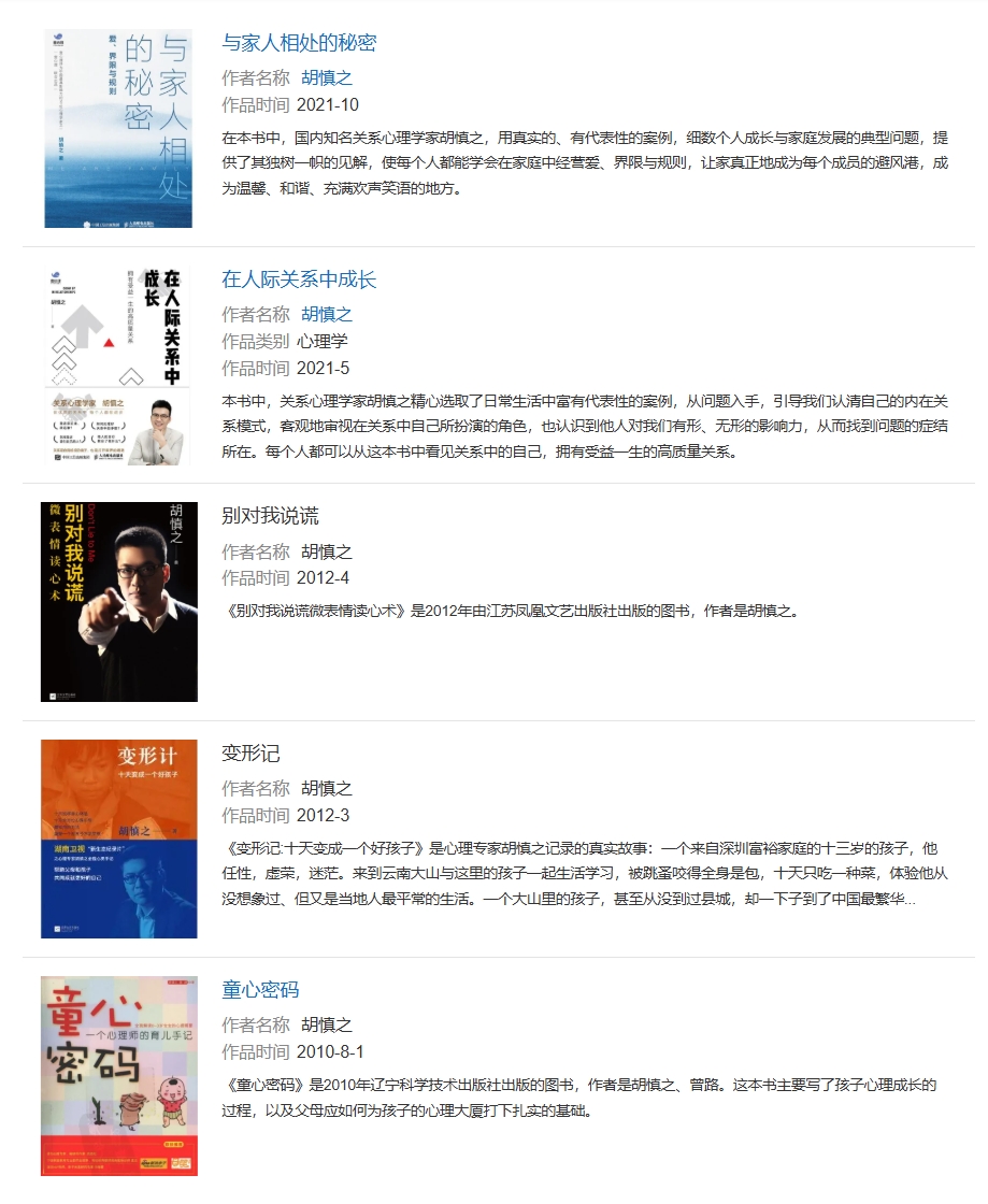 胡慎之擅长微表情解析和关系解构心理学,有医学和心理学研究生学历,还是精神分析师、心理咨询师、心理治疗师和婚姻家庭指导师。他曾获得中国首批心理咨询师认证资格,应邀在中山大学、华南师范大学、暨南大学、广州工业大学等华南地区著名高等院校心理大讲堂担任心理专家,举办过百余场次各类工作坊及心理专业课程培训。