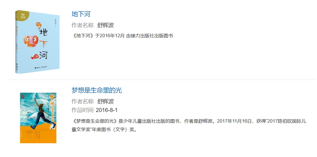 2017年11月16日,他创作的《梦想是生命里的光》获得第十届全国优秀儿童文学奖,2017陈伯吹国际儿童文学奖年度图书(文字)奖。