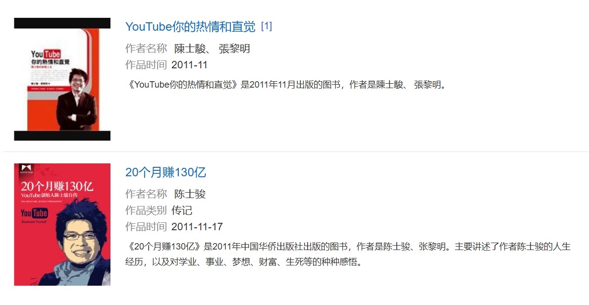 陈士骏凭YouTube名利双收,2006年6月,美国《Business2.0》公布全球五十大企业影响力人士排行榜,陈士骏排名第28位。