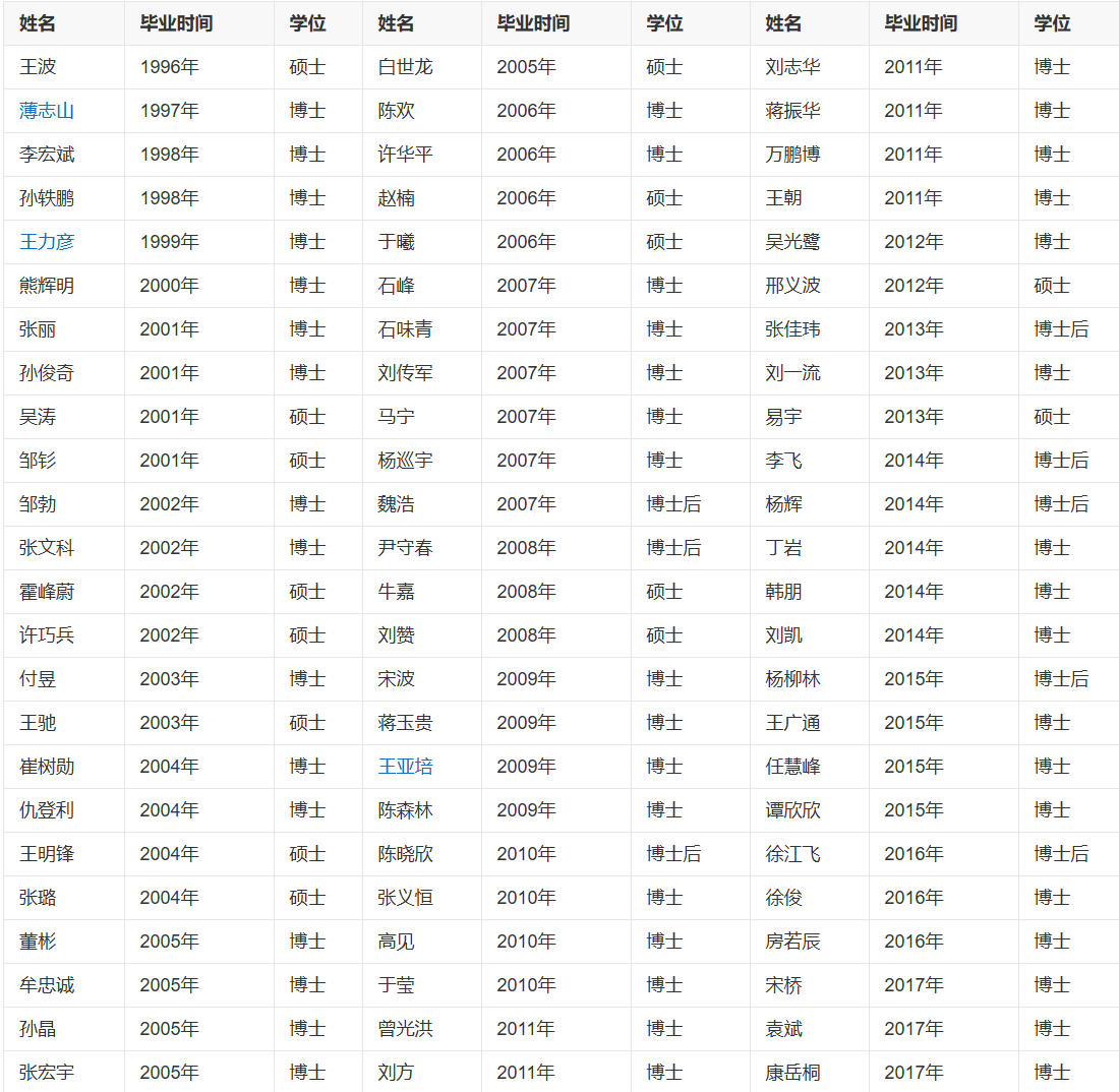 截至2017年,张希一共培养博士生50多名,硕士10多名,出站博士后10多名。具体培养学生的信息如下: